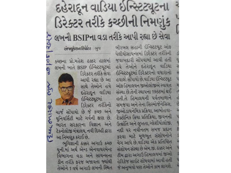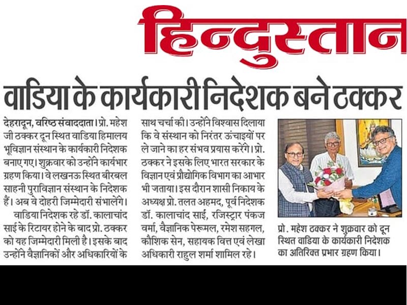Prof. Mahesh G. Thakkar, Director BSIP, has taken additional charge of Director WIHG, Dehradun.